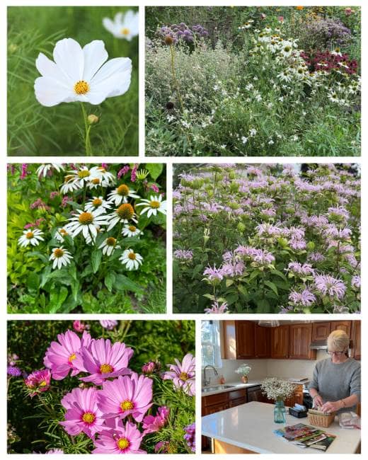 White and pink cosmos, white lupines — gentle bursts of color that will sway in summer breezes.
